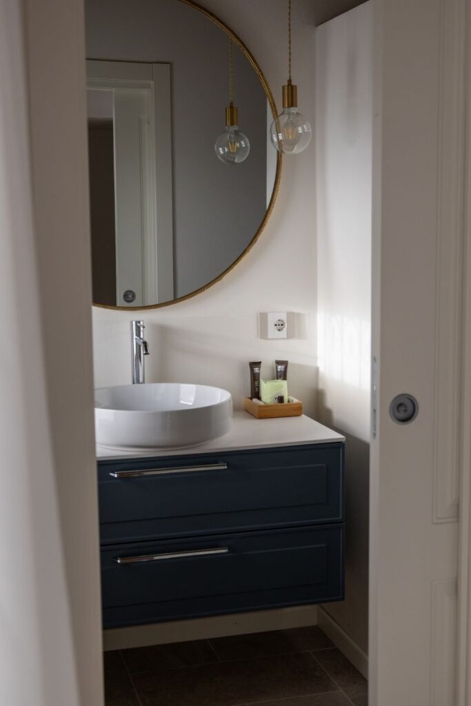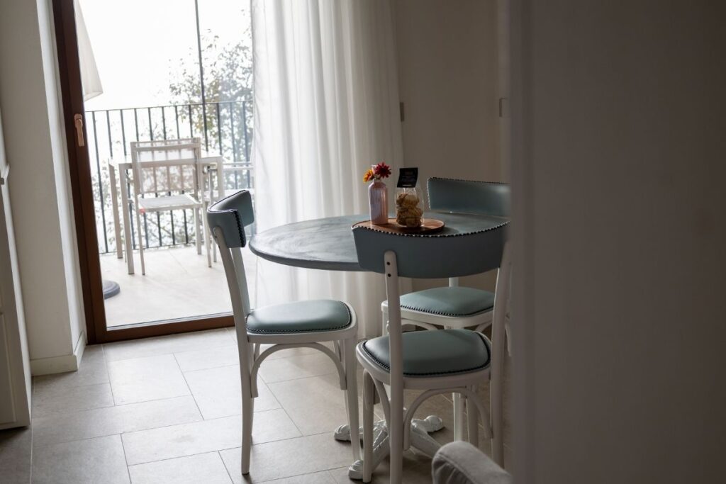 Soggiornando in questa home suite troverete un’ampia zona giorno con angolo cottura e comodo divano e una caratteristica area pranzo con vista lago. Nella camera matrimoniale colpisce il letto a baldacchino dalle linee moderne e un appendiabiti di design. Il bagno affaccia sul borgo ed è dotato di una spaziosa doccia a pioggia walk in.