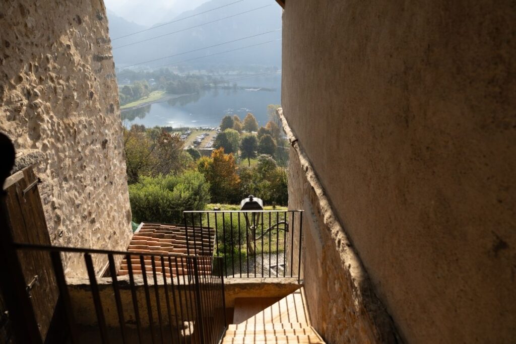 Vi troverete in un ampio appartamento dove trascorrere momenti di vacanza in compagnia della famiglia o tra amici. L’ingresso trasmette fin da subito il carattere dell’alloggio in un sapiente mix tra sapore rustico e modernità: i soffitti alti e di legno e le pareti in pietra accolgono un’ampia zona giorno con balcone vista lago, cucina attrezzata con penisola centrale, zona pranzo con vista lago e area relax con divano. La scala in ferro dalle linee moderne vi condurrà alla zona notte dove troverete la camera matrimoniale con pareti in pietra e un delizioso balconcino vista lago e una camera doppia rivolta verso il borgo. Lo spazioso bagno è dotato di un’ampia doccia a pioggia.