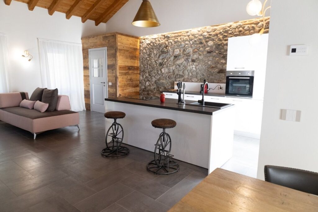 La casa vacanze Le Cornici Home Suites propone ai suoi ospiti 5 alloggi indipendenti in un rustico edificio di famiglia che conserva l’architettura e il fascino di un tempo grazie ad un’attenta ristrutturazione che ha saputo unire l’atmosfera e i materiali del passato con tutti i comfort moderni. Ogni alloggio rende omaggio agli “scotom” – i soprannomi – delle diverse generazioni che compongono l’albero genealogico dei proprietari.