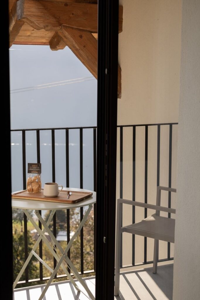 Soggiornando in questa home suite troverete una piccola zona pranzo, con angolo cottura, tavolo da pranzo e divano due posti, dalla quale accedere al vero pezzo forte: la terrazza vista lago. La camera da letto matrimoniale è caratterizzata da travi a vista originali e da un piccolo armadio incassato nella parete ed affaccia sul borgo. Il bagno è dotato di una spaziosa doccia a pioggia.