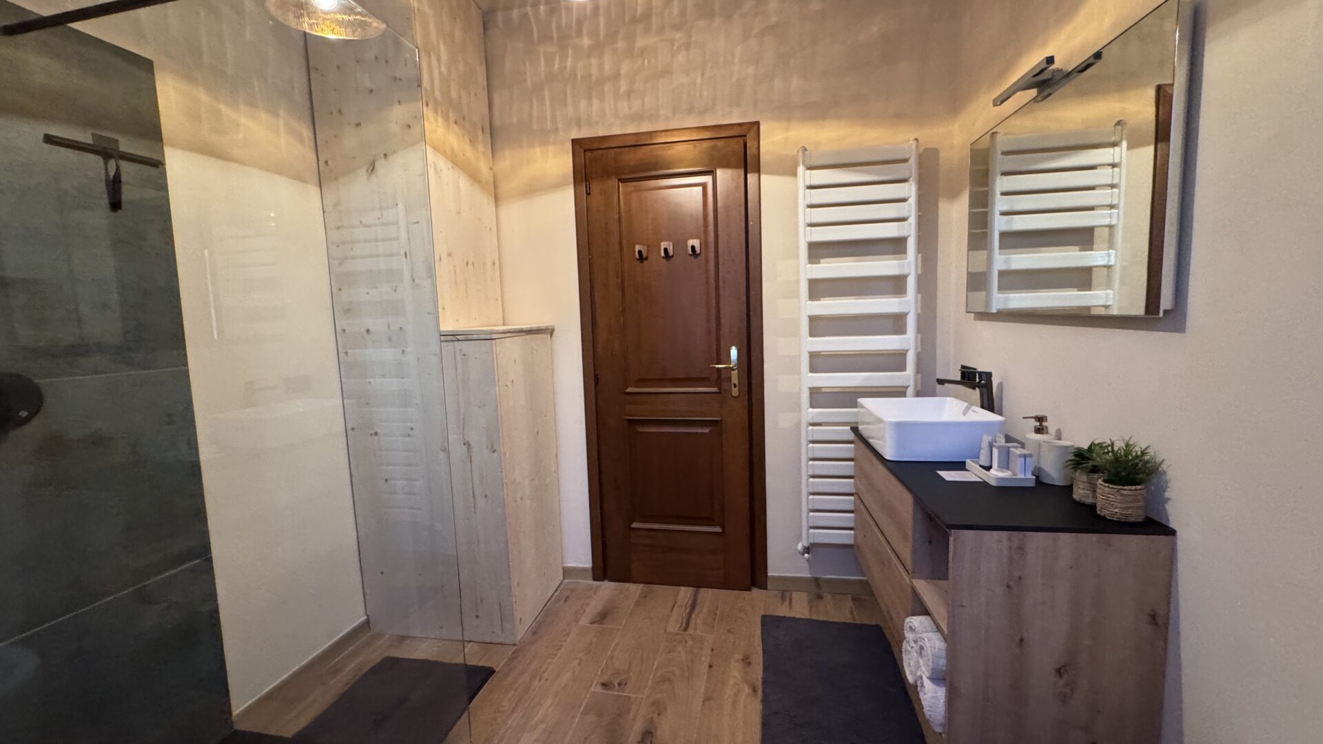 - Ein modernes Badezimmer mit großzügiger Walk-in-Dusche