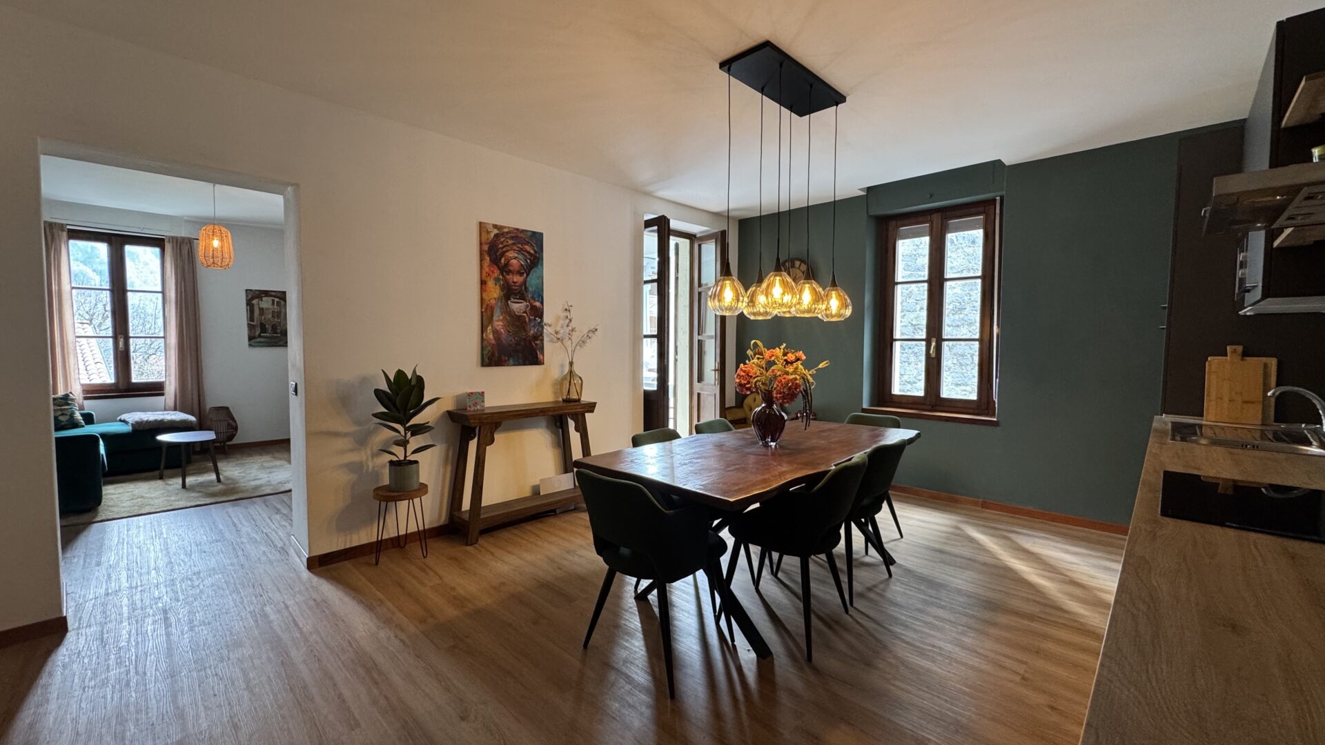 Die Wohnung befindet sich im ersten Stock eines historischen Gebäudes aus dem Jahr 1895 und verbindet den Charme historischer Architektur mit modernem Komfort in einer warmen und entspannten Atmosphäre.
