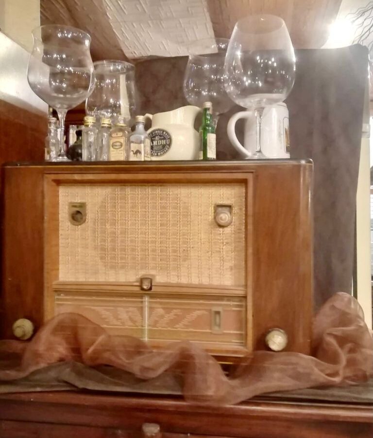 Ambiente caldo e accogliente all’interno con foto d’epoca, mobili su misura, cucina a vista e una collezione di “vuoti d’autore” appartenuti al collezionista Edoardo Giaccone.