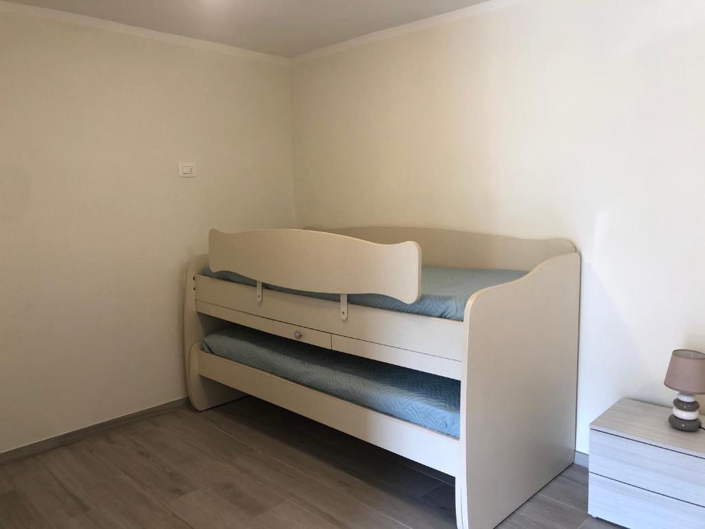 De grote slaapkamer heeft een comfortabel tweepersoonsbed en een praktisch stapelbed, waardoor er genoeg ruimte is voor het gezin. In de woonkamer staat een comfortabele slaapbank, ideaal voor extra gasten. Er is ook een tv beschikbaar voor je vermaak.
